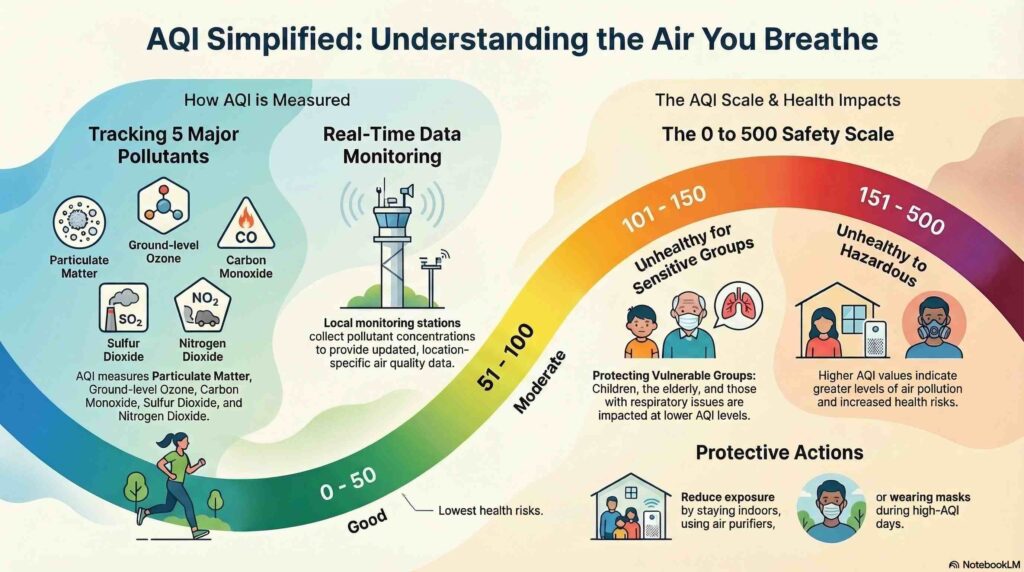 The Air Quality Index is a standardized measurement tool that government agencies use to report daily outdoor air pollution levels. This numerical system translates complex atmospheric data into a simple score that anyone can understand.